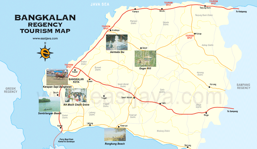 Sebelah Selatan dan Barat berbatasan dengan Selat Madura.